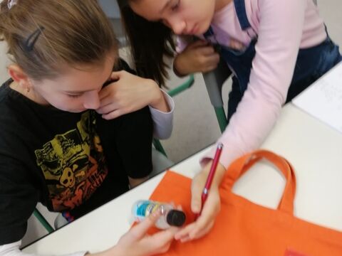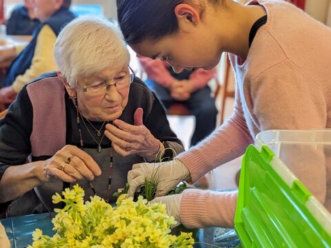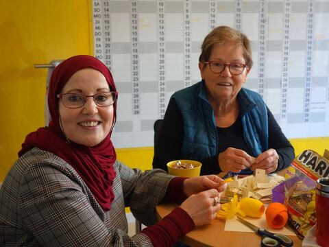 Schülerinnen basteln mit dem AWO Seniorenzentrum.