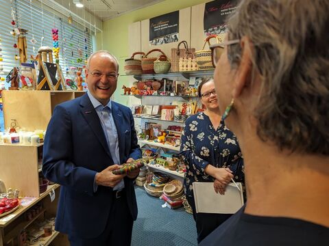 MdL Dr. Petra Loibl unterstützt das Team des Weltladen Dingolfing.