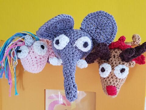 Häkeltierchen suchen ein neues Zuhause als Lesezeichen