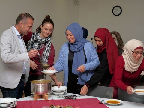 Bürgermeister Armin Grassinger zu Besuch bei der Kochgruppe.