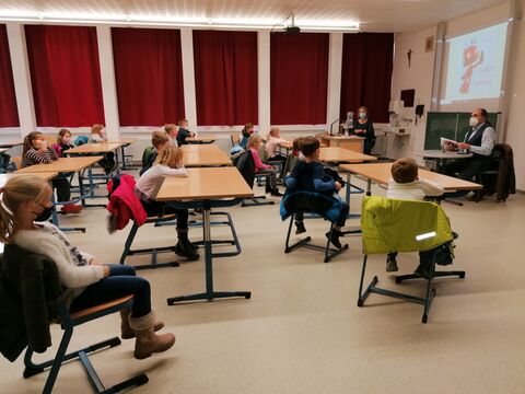 Tierschutzjugend "Wilde Wölfe" erhält Besuch von Pfarrer Diermeier.