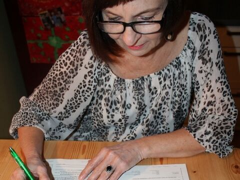 Bei der heutigen Losung war Sprachpatin Anita Pfeffer die glückliche Gewinnerin.