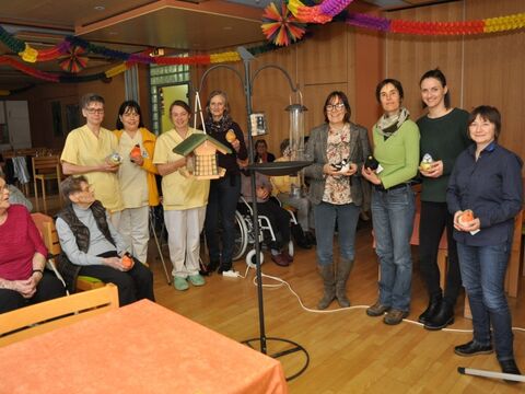 Senioren im AWO Seniorenzentrum "Bayerwaldblick" freuen sich über Futterstation