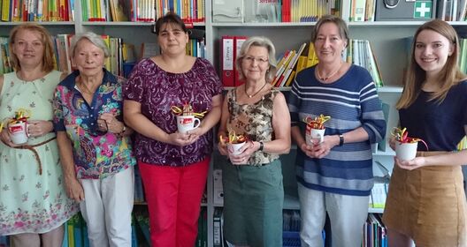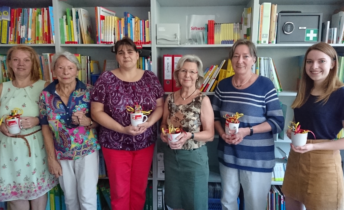 Sie sind nicht nur eine wichtige Stütze beim Erlernen der neuen Sprache, sondern sie sind auch eine erste Bezugsperson im neuen Land für Kinder mit Migrationshintergrund - die Sprachpaten. Das Team der Grundschule Landau rund um Rektor Andreas Fischer weiß ihr Engagement zu schätzen und hat sich deshalb zum Schuljahresende bei den aktiven Sprachpaten mit einem kleinen Präsent herzlich bedankt. In die Ferien verabschiedet wurden am Mittwoch: Alexandra Holzapfel, Waltraud Bomblies, Birgit Reisinger, Gisela Esterl, Gisela Jahn und Fiona Pex. Sechs weitere Sprachpaten waren außerdem im vergangenen Jahr an der Grundschule Landau im Einsatz.