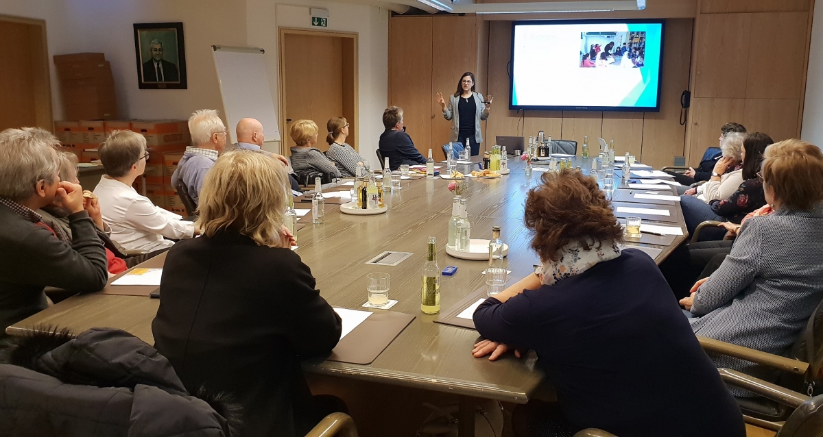 Wie die Ritter der Tafelrunde durften sich unsere Sprachpaten gestern am Tisch des Kleinen Sitzungssaals des Landratsamts versammeln. Das Programm von Referentin Astrid Klingseisen lockte gleich 19 Freiwillige nach Dingolfing, so dass der Raum bis auf den letzten Platz besetzt war. Und die Anwesenden wurden nicht enttäuscht. Die engagierte Grundschullehrerin hatte umfassende Informationen rund um den Zweitspracherwerb dabei und vor allem viele praktische Tipps zum spielerischen Erlernen der deutschen Sprache. Auch einige Materialien wurden vorgestellt, mit denen die Referentin selbst in der Praxis gerne arbeitet. Geschäftsführerin Laura Dullinger informierte die Ehrenamtlichen, dass diese Spiele und Bücher von der FreiwilligenAgentur für die Ausleihen in Landau und Dingolfing erworben werden. So können alle Sprachpaten jederzeit ihre Stunden damit bereichern. Einige digitale Vorlagen, die von Astrid Klingseisen empfohlen wurden, sollen zukünftig den Sprachpatenordner ergänzen.