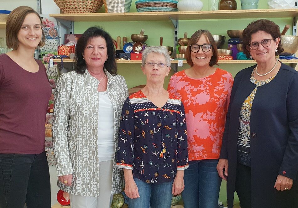 darf sich auf jeden Fall heute schon über ein Lesezeichen von der Werk- und Arbeitsstube Dingolfing freuen. Mit einem Bild von ihrer Arbeit im Weltladen Dingolfing hat auch sie an unserer Verlosung teilgenommen. Entstanden ist die Aufnahme beim Seitenwechsel von Frau Dr. Petra Loibl (ganz rechts). Mit auf dem Bild: Laura Dullinger (Geschäftsführerin FWA), Gudrun Zollner (Vorsitzende FWA), Irene Weikl (Weltladen, v.l.).